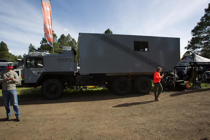 I have driven a five-ton military 6×6 and they are nice to drive and go just about anywhere, with a few limitations. They have automatic transmissions on the newer years, or if you find an older model, you might get a stick shift. Either way, you must remember there is a big cost to the project. I am not sure the cost of a U.S. model truck, but Global Expedition Vehicles had several rigs on display. The base cost for a chassis started at $55,000 and the living quarters started in around $100,000 (up to $300,000) and this would be how you wanted your living area to be equipped.