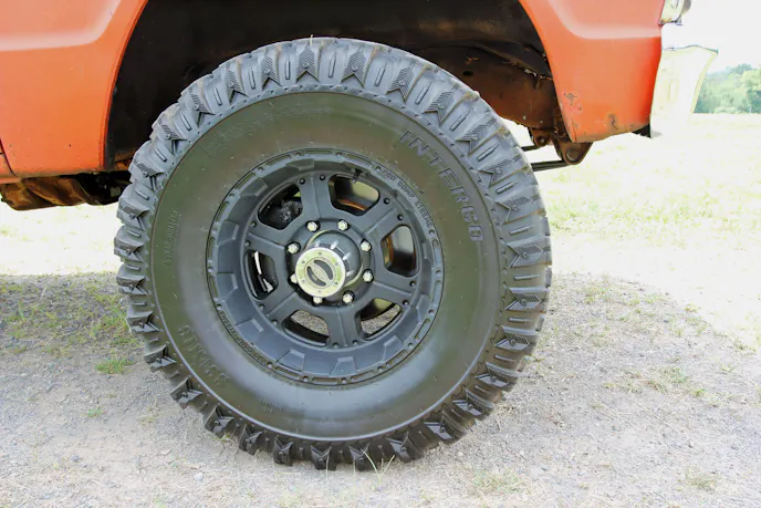Out back is a rebuilt, disc-brake-equipped 14-bolt full-float axle. It’s fitted with an Eaton Posi limited-slip differential and a G2 Axle & Gear aluminum differential cover. Up front is a rebuilt Dana 60 axle, which sports a limited-slip differential and a G2 Axle & Gear aluminum differential cover. It also features Warn Premium manual locking hubs. Both axles have 4.10:1 gears.