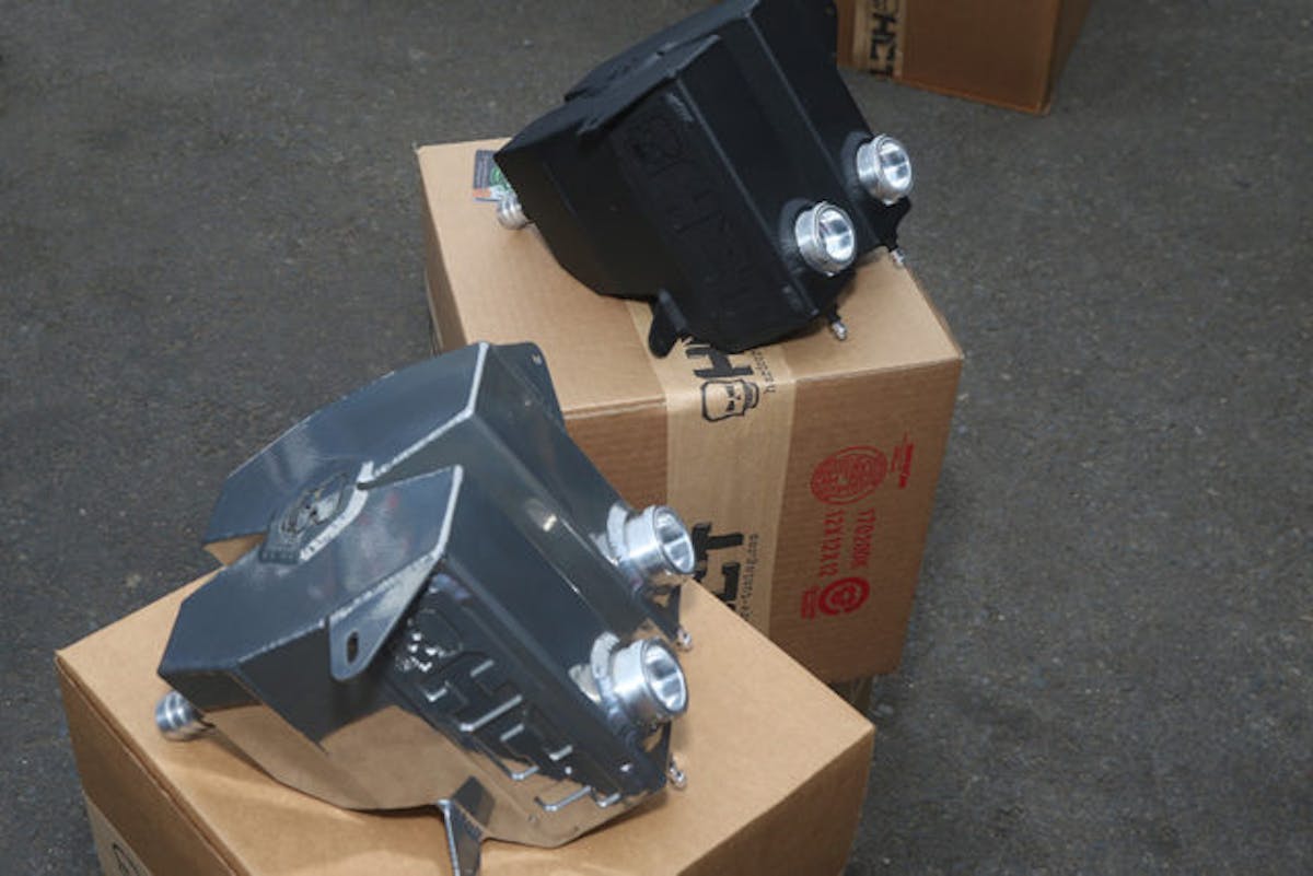 Their lower radius rods are 1.25-inch diameter quarter inch thick wall chromoly tubing with double bends to increase ground clearance. They represent a 600 percent increase in strength over the factory parts. The upper radius rods are 7075 aluminum.