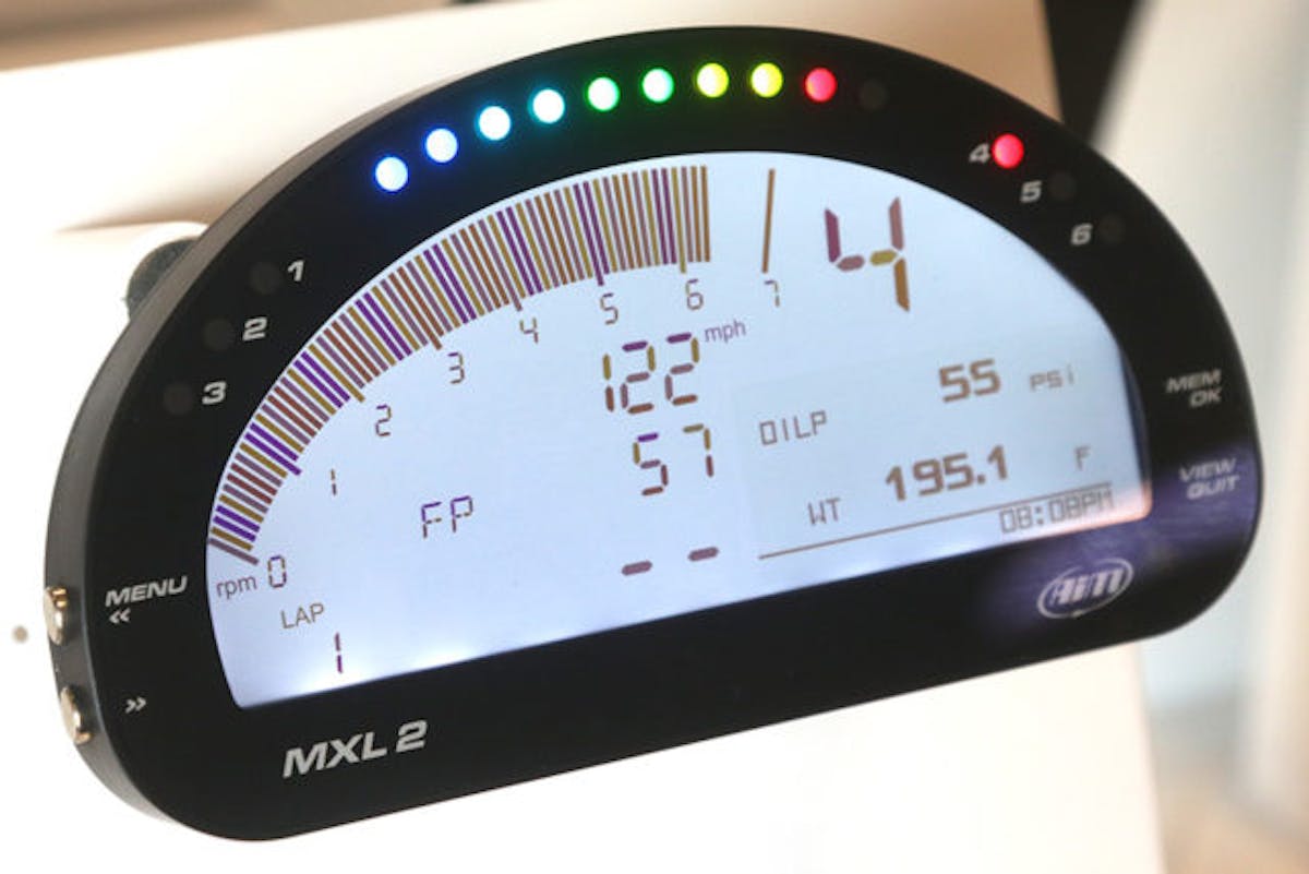 We love it anytime race developed technology makes it to the general public. AIM Sportline makes a line of dash displays that show data logging from added sensors or, depending on your application, directly from your ECU. Their MXL 2 has eight analog inputs that sample one thousand times per second, per channel. It has four digital speed inputs that can monitor anything that rotates; camshafts, hubs, axles, etc.