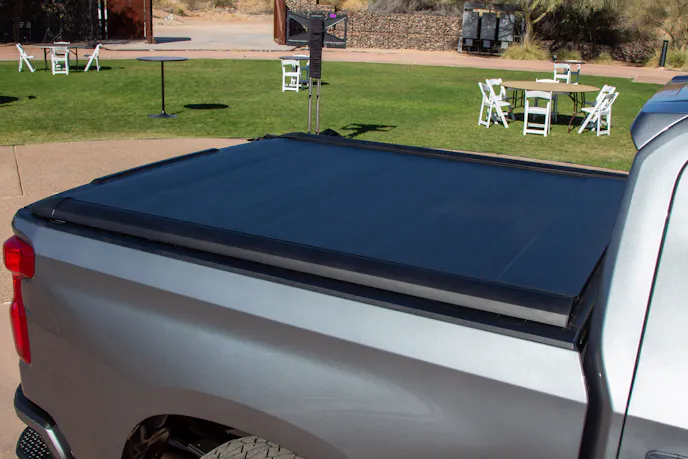 As the EVO is a retractable cover, it spools out of a canister at the foot of the bed. The lid on the canister lifts up effortlessly, making it easy to inspect and wash out any leaves, pine needles, or other debris that collects inside. “Mountain Top did a great job on the water management side of things, too,” Collins pointed out. “There are six water drainage points to prevent stagnant water from forming.”
