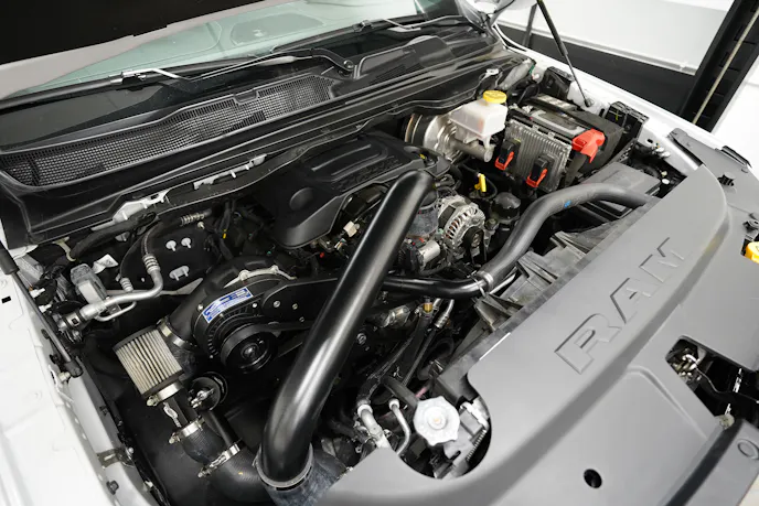 The 2019 and up Ram 1500 5.7 liter V8 is advertised to garner around 287 horsepower at 5600 RPM. With the ProCharger 5.7L High Output Intercooled System with D-1SC (Part # 1DP314-SCI), this kit can add as much as 7 PSI of boost and 140+ horsepower.