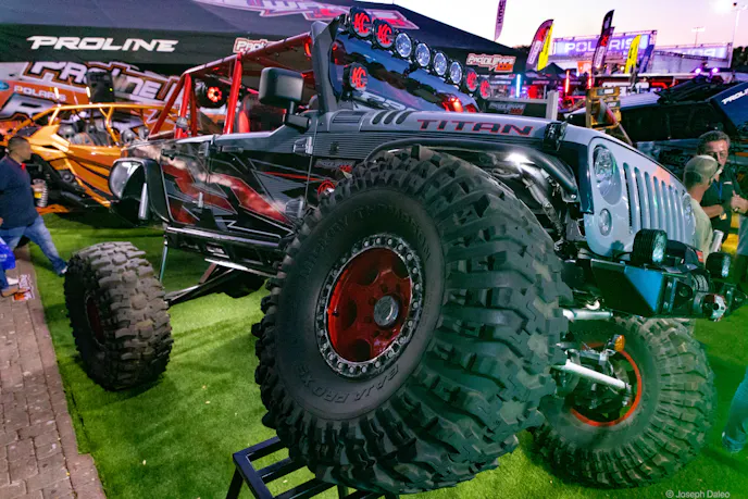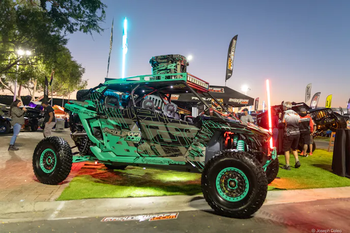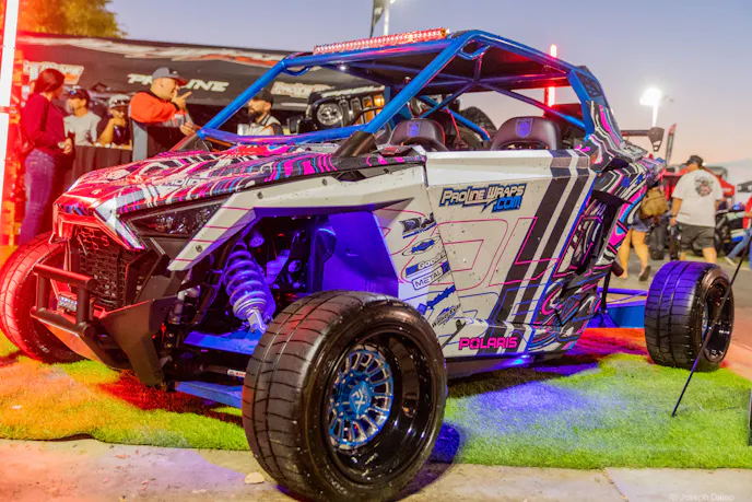 Proline Wraps designed a great display for Friday’s night show with LED whips, rock lights and great music along with unique builds to showcase their quality exterior wraps. Literally outshining Gatorwraps’ obnoxiously reflective trailer, Proline had customers’ interests piqued as to what custom designs could be applied to their vehicles.