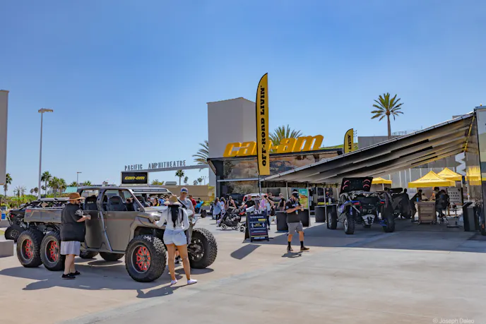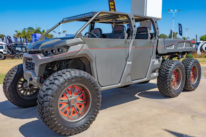 Featuring window nets, custom graphics, orange powder-coated roll cage and suspension, carbon suede seats and steering wheel, factory intercom, bead-locks and a roof scoop, the Robby Gordon Edition of the El Jefe (4-door) model carries a $41,999 MSRP. After waiting in line for over fifteen minutes, sitting behind the steering wheel immediately evokes visions of blasting through the Baja just like the UTV’s namesake. Even though they were tucked into the back corner of the grounds, the booth constantly overflowed into the walkway.