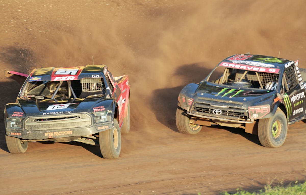CJ Greaves, piloting the Monster Energy Toyota Tundra, clawed back Carlson’s lead and searched for the opportunity to make a pass for the lead. With a few laps to go, Greaves capitalized an opportunity. As the leading pair launched off the finish line jump, Carlson protected the inside line in Turn 1 when Greaves made his move.