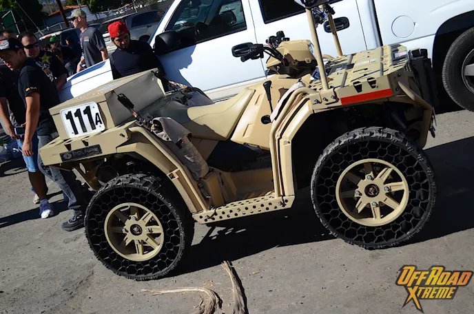 Sitting at tech inspection you are able to see the race officials go through the vehicles making sure everything is update, and safe. Helmets, suits, and the vehicles cage all get a look. We spotted the number 111A race ATV outside of tech with a different set of tires.