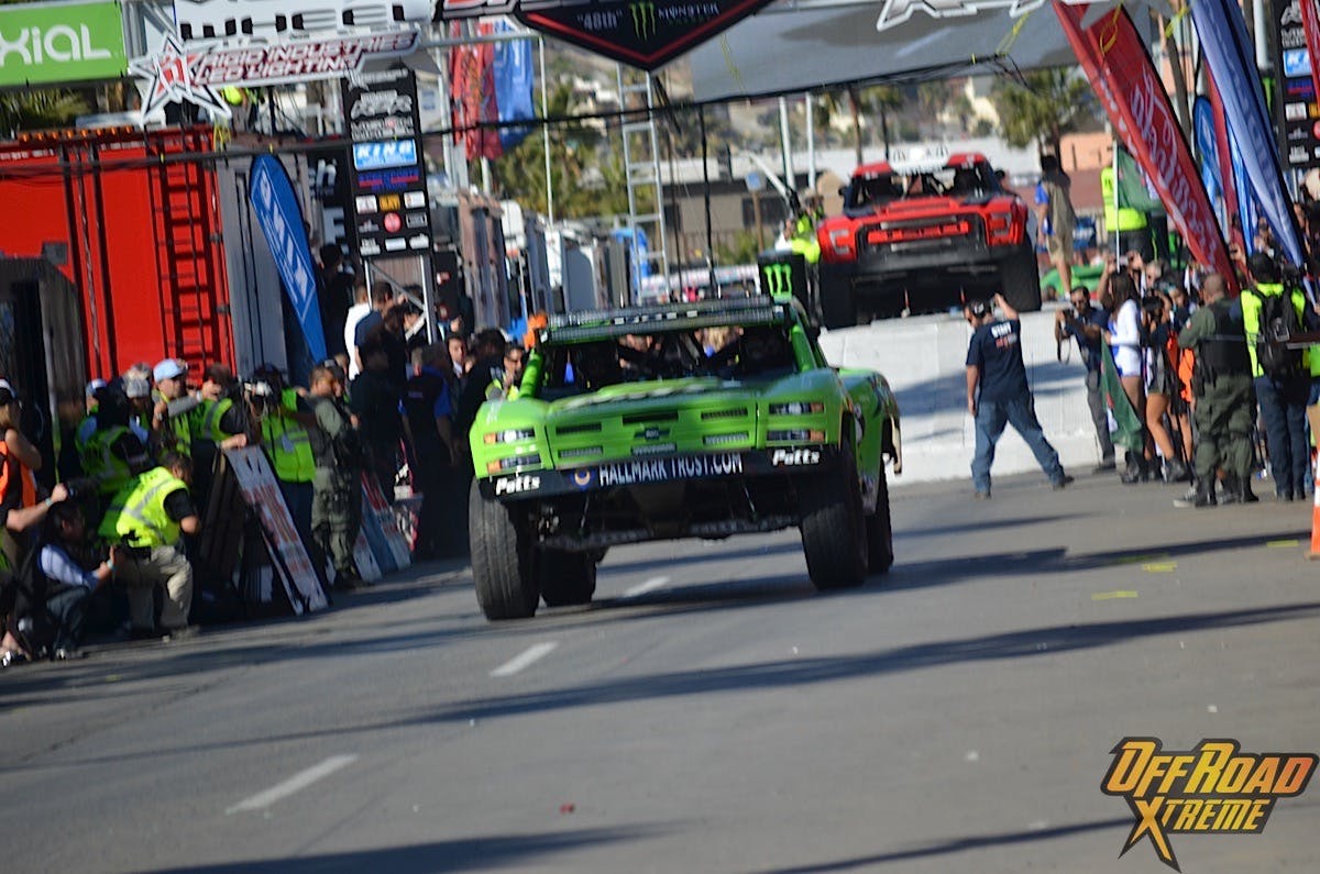 The trucks were off, each taking a different path and speed into the first turn. Some came in hot, while others seemed to limp it around the corner. One after another they all went through. The likes of Rob MacCacharen, Robby Gordon, Larry Roeseler, BJ Baldwin, and crowd favorite Apdaly Lopez.