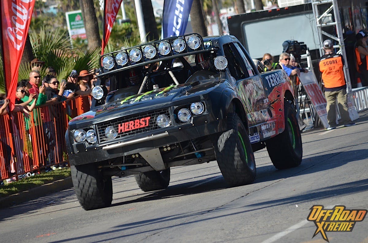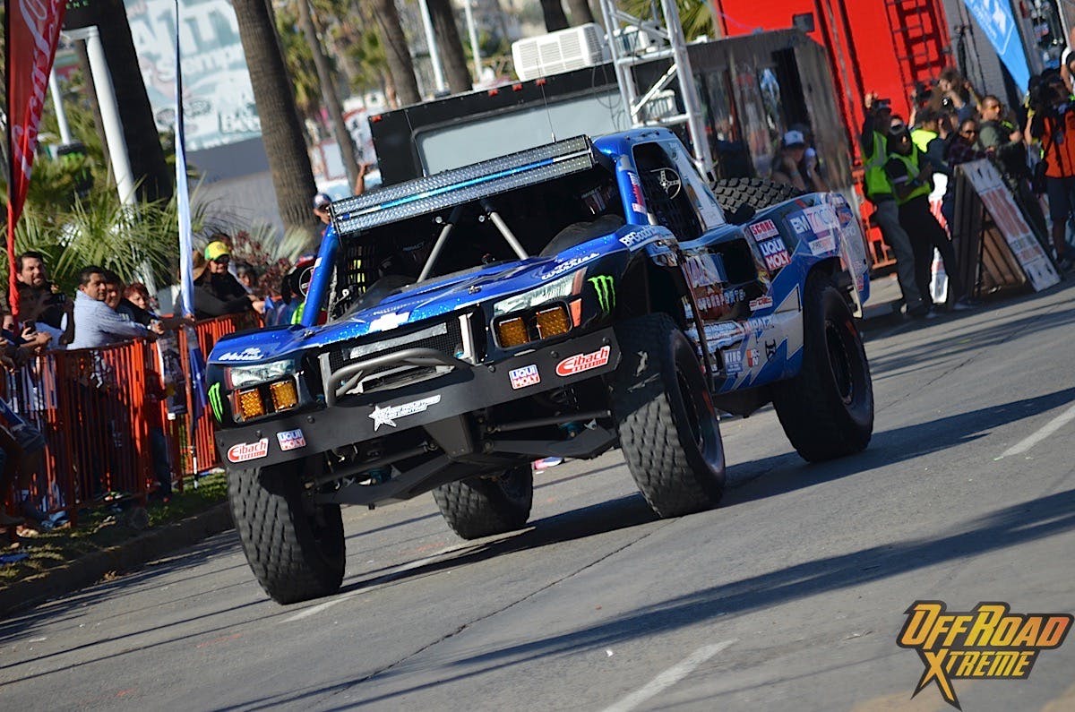 The trucks were off, each taking a different path and speed into the first turn. Some came in hot, while others seemed to limp it around the corner. One after another they all went through. The likes of Rob MacCacharen, Robby Gordon, Larry Roeseler, BJ Baldwin, and crowd favorite Apdaly Lopez.