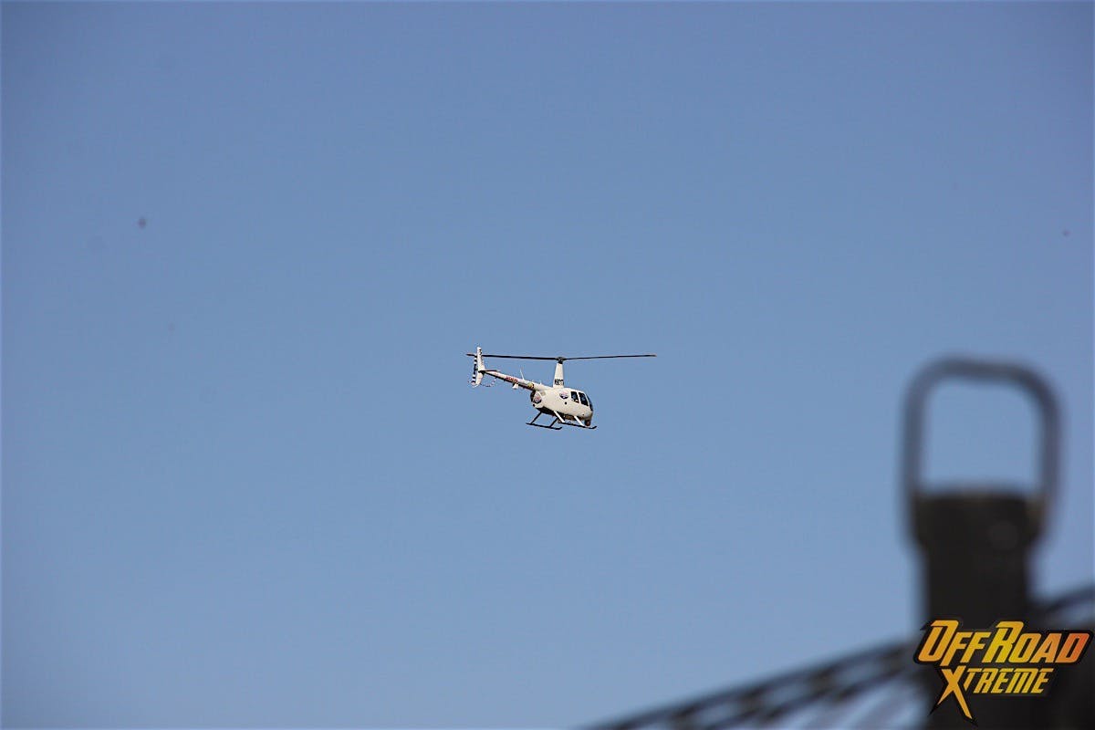 The Robinson R44 helicopter is brought out to shoot sky-high angles of footage and have it sent to the Production Studio.