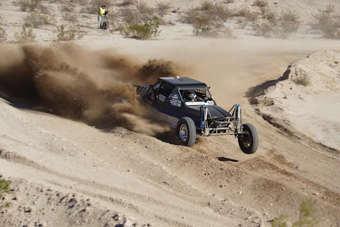 El Mofles team brought two Class 9 cars for this race, a single seat that Ulysses would be driving and a two-seater that Jesus would be driving along with his longtime girlfriend Loretta as navigator. Ulysses recently changed out his old shocks for new class legal King shocks with finned cooling reservoirs to prevent shock fade. Jesus could not wait to get his car on the course and the team had over-prepped for the race and brought the garage with them if anything happened.