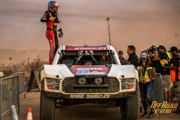Physically crossing the finish first, MacCachren anxiously waited to see if the #272 had kept up their pace. As the sun set over the desert a dust trail could be seen coming into the finish line. With that spectacular scene, it was clear that Troy Grabowski was in it to win it. Not only had he maintained his pace, but he also laid down the race’s second-fastest lap. The Grabowski’s would go down in history as the first overall winner of The California 300.
