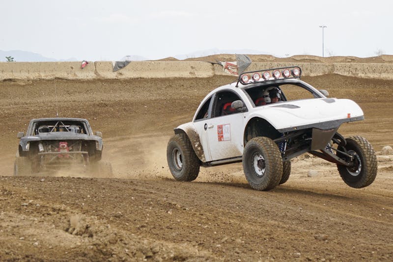 The Baja bug and sand car class consist of Volkswagen bugs along with tubular chassis sand rails that all have rear/mid engine with a transaxle transmission. Linked or 1450 vehicles are both mid-size to full-size trucks with non-factory high powered motors equipped with rear suspension links which allow the rear end differential housing to articulate with numerous amounts of travel.