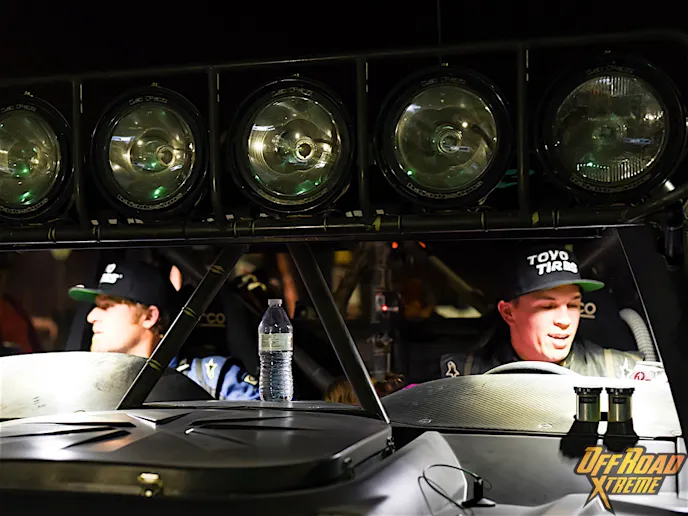 Thursday’s Time Trials determined the race order for Saturday’s main event. Almost immediately social media and local conversation was dominated by Sam Baldi’s spectacular end-over-end crash on the bunny jump on the qualifier course. Fortunately, nobody injured in the crash and Baldi’s crew had the car ready to race by Saturday’s start time, earning points for their trouble. The 2012 Parker 425 Champion, Robby Gordon, took the lead spot overall at Thursday’s qualifiers in his Speed Energy, Toyo Tires racing custom Trick Truck, only to break his transmission flexplate in the first lap of the main event on Saturday.