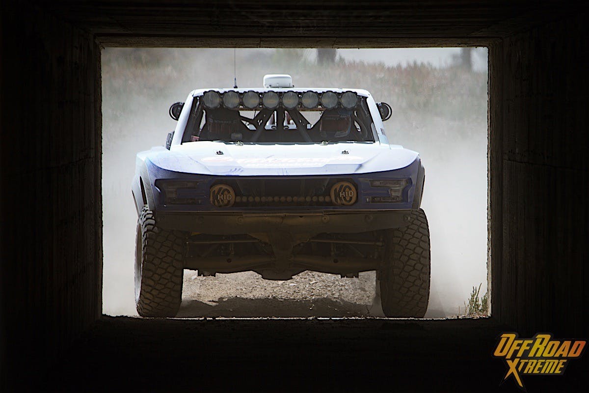 Many of the UTVs ran into over heating issues leading to popping head gaskets including Jacob Carver in his new Rhys Millen Racing Polaris RZR. The trucks would make their way through race mile 97 which was just after pit 3. There was a straight away with a fast soft corner where many through plumes of sand.