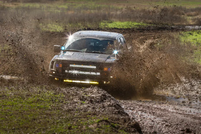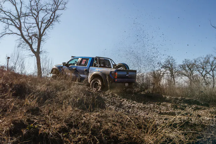 Have you ever been cold, wet, and muddy? We have. As a matter of fact, we recently found ourselves at the Rally Ready Ranch located outside of Dale, Texas for a Ford Raptor event, and it got nasty. The unusually wet weather had made the course more challenging than normal, and we were beating down the door to get a look at some high-speed, high-adrenaline off-roading.