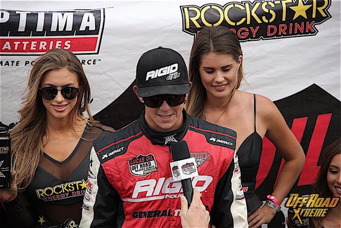 Pro 4 kicked off the main event. The conflict between Menzies and Deegan may have fueled Menzies’ driving, because he seemed to be on a mission to earn the top spot on the podium. Starting in the middle of the pack, Menzies slowly made his way to the front. After a restart, Menzies passed Adler on a turn before finishing second. Renezeder was once again the top dog in Pro 4, and Adler rounded out the podium. Menzies admitted from the podium that he simply “didn’t have the speed” to catch Renezeder.