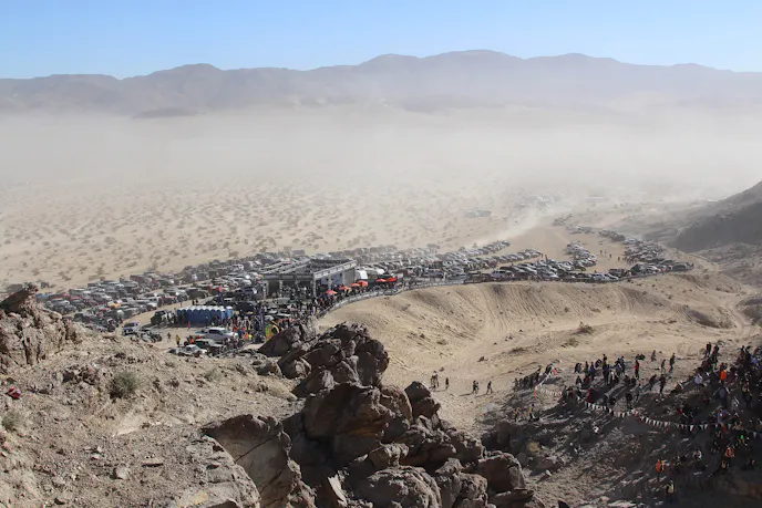 We took a shuttle over to Chocolate Thunder, quite far the busiest place in all of Johnson Valley. The nearby jumbotron broadcast said that Bailey Campbell’s breakdown was due to the water pump pulley failing. As of yet, no one knew if she was still in the running.