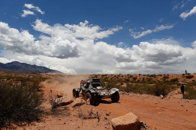 Racers took off from Asuncion, Paraguay, the first time the Dakar had visited the country. The goal was to get to Buenos Aires, Argentina by way of twelve different stages and hundreds of miles. At the start, 63 vehicles in the car category took off. By the end of the race, there were 57.
