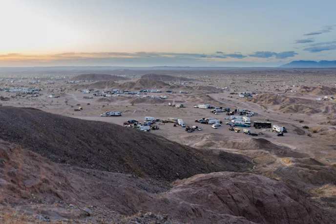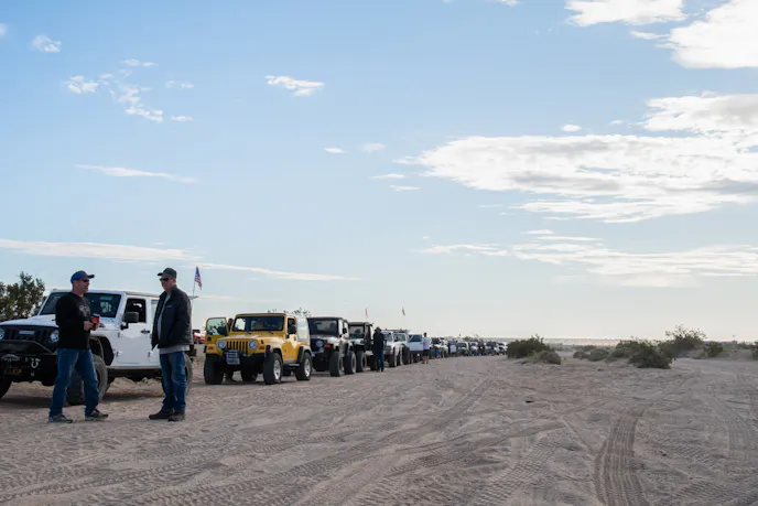 Driving in early Saturday morning, the quiet S22 highway is a surreal place in the pre-dawn light. The shadows of the hills and sparse vegetation pass quietly as you head towards the Salton Sea. Cresting the last ridge, the view opens up, revealing the sun rising above the lake and thousands of off-road enthusiasts camped and ready for the day’s adventure.