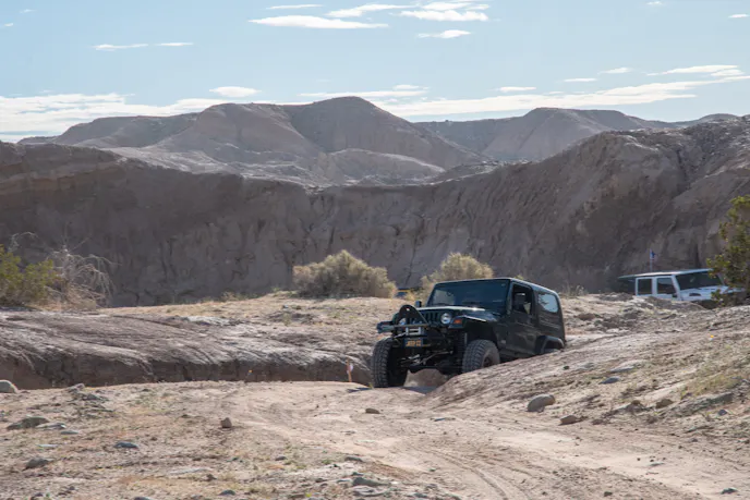 On top one of these climbs is Checkpoint 3, manned by the Hemet Jeep Club. They’re providing support to any of the drivers that may need it. One of those Jeeps is my ride back to HQ, and it’s time for me to part ways with the trail. I watch as the War Wagon disappears around a bend heading towards Tectonic Canyon and the last leg of the Green Route. For me, it’s time to head over to the Ocotillo Wells training grounds and check out some more 4×4 fun.