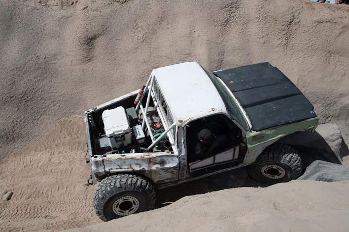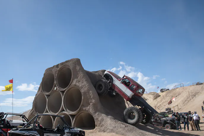 This year was no exception, with crowds gathered around “Little Sluice” and “Dollar Drop,” cheering drivers on as they navigated the terrain. With such a wide assortment of obstacles and so many vehicles running around, it was a non-stop buffet of crawling action. As the day wound down and the winds picked up, not even the blinding sand kept drivers from running the course, trying to better their lines and put their rigs to the test.