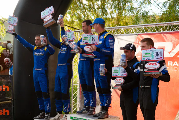 Mark Lovell and Roger Freeman were competitors killed in an accident at the 2003 event, former British Rally Champions and the 2001 champion here in America they made an impression on American rally teams that will never be forgotten. The final podium spot was a titanic battle between Brandon Semenuk/John Hall and McKenna/Jordan, both driving Fiesta’s. In an inspired drive McKenna picked up the third spot, extra points and the lead in the ARA Championship. Semenuk/Hall took fourth in class and overall.