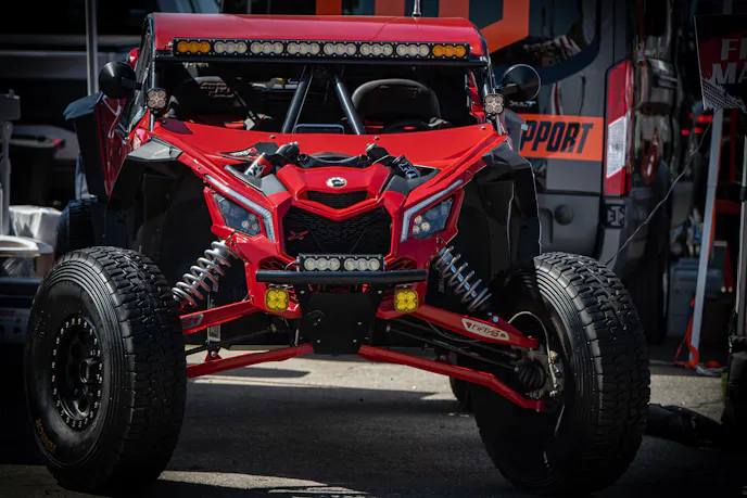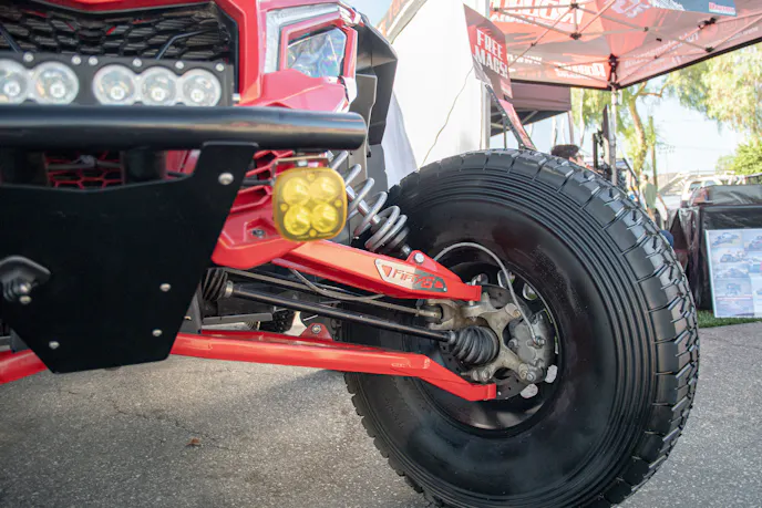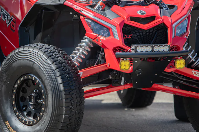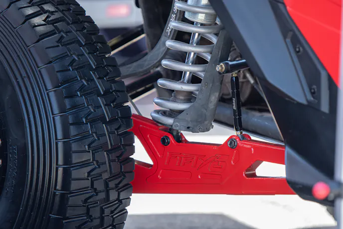 This complete solution currently offered for the Can Am Maverick x3 is a true bolt-on application. The race-ready kit includes boxed arms, rear links and all the hardware needed to get your X3 Baja-ready. With painted and fully assembled Maverick kits available, there was talk of a similar kit for the RZR in the late design phase as well.