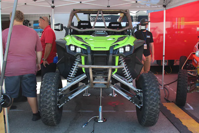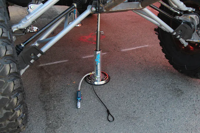 Wolfpack’s pedigree has racing experience to boot. Behind the red-and-black RZR we were looking at, a yellow-and-black 4500 class RZR also used Wolfpack’s suspension. “We’ve raced both of these side-by-sides in Best In The Desert, among other racing series,” said Alex. “We make kits that cater to enthusiasts and racers alike.”