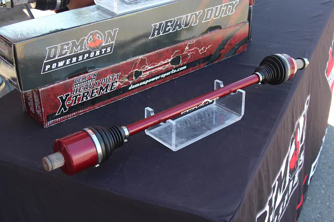 Supporting the drivetrain side of things, Demon Powersports was out showcasing tech with its Heavy Duty X-Treme CV axle. CV axles are a staple of UTVs, as all of them use independent rear suspension to maximize travel. But the Heavy Duty X-Treme from Demon showed there were plenty of areas for improvement.
