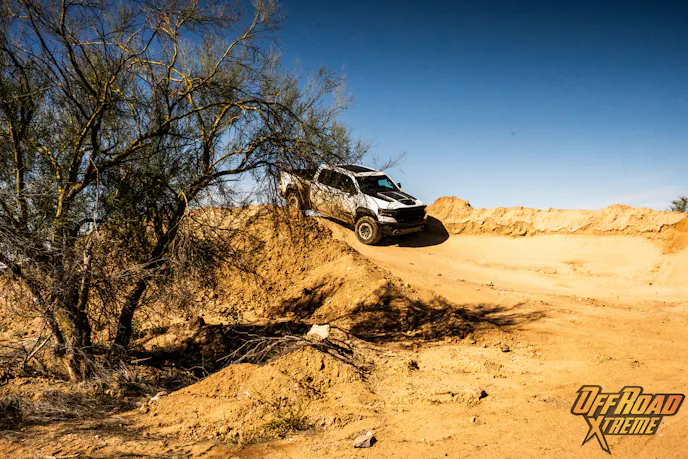 The off-road course was all dirt and watered down repeatedly top both keep the dust down and to display the trucks performance on wet, muddy roads. The first section was through the wet mud with some slight turns at a moderate rate of speed. Next would be a climb over a steep hill of more than a 45-degree grade and back down.