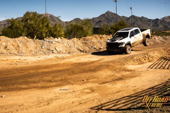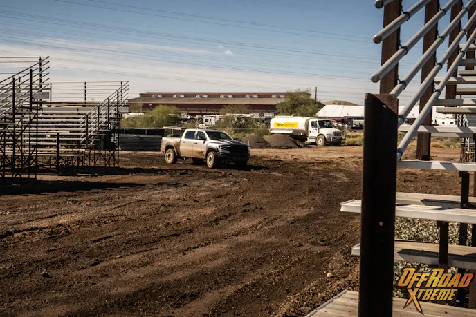 The off-road track for the RAM TRX Off-Road Experience was located outside of the WestWorld buildings with just a short ride to get there. There were several RAM TRX trucks with drivers picking up riders to take them through the course.