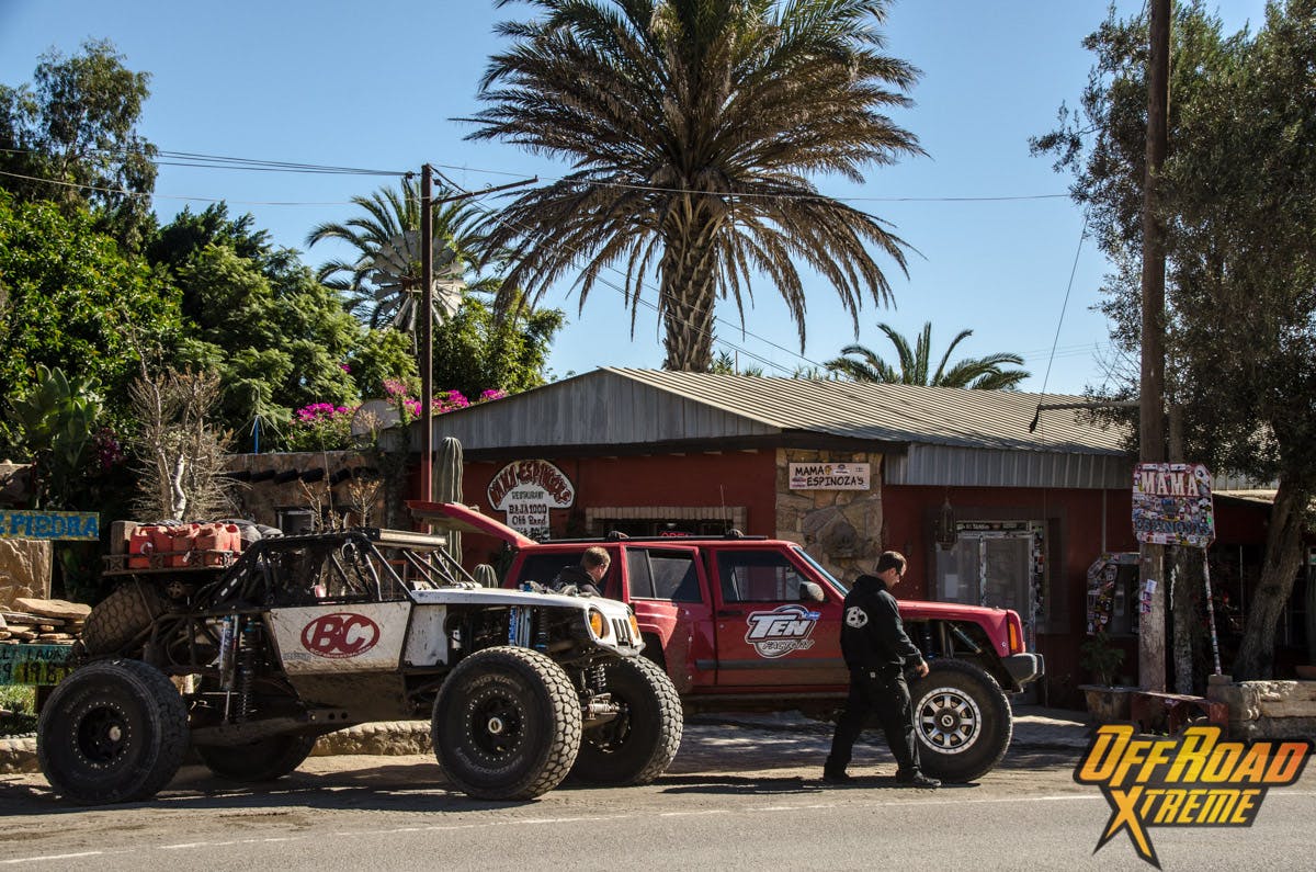 We took the first access road to the highway and drove into El Rosario. We stopped to fuel up, resupply at the grocery store and stop into Mama Espinoza’s. Mama recently turned 109 years old and the restaurant is run by her family. El Rosairo is where Eric would be getting into the race truck so we jumped back onto the racecourse in a wash just off the main highway to continue our prerun.