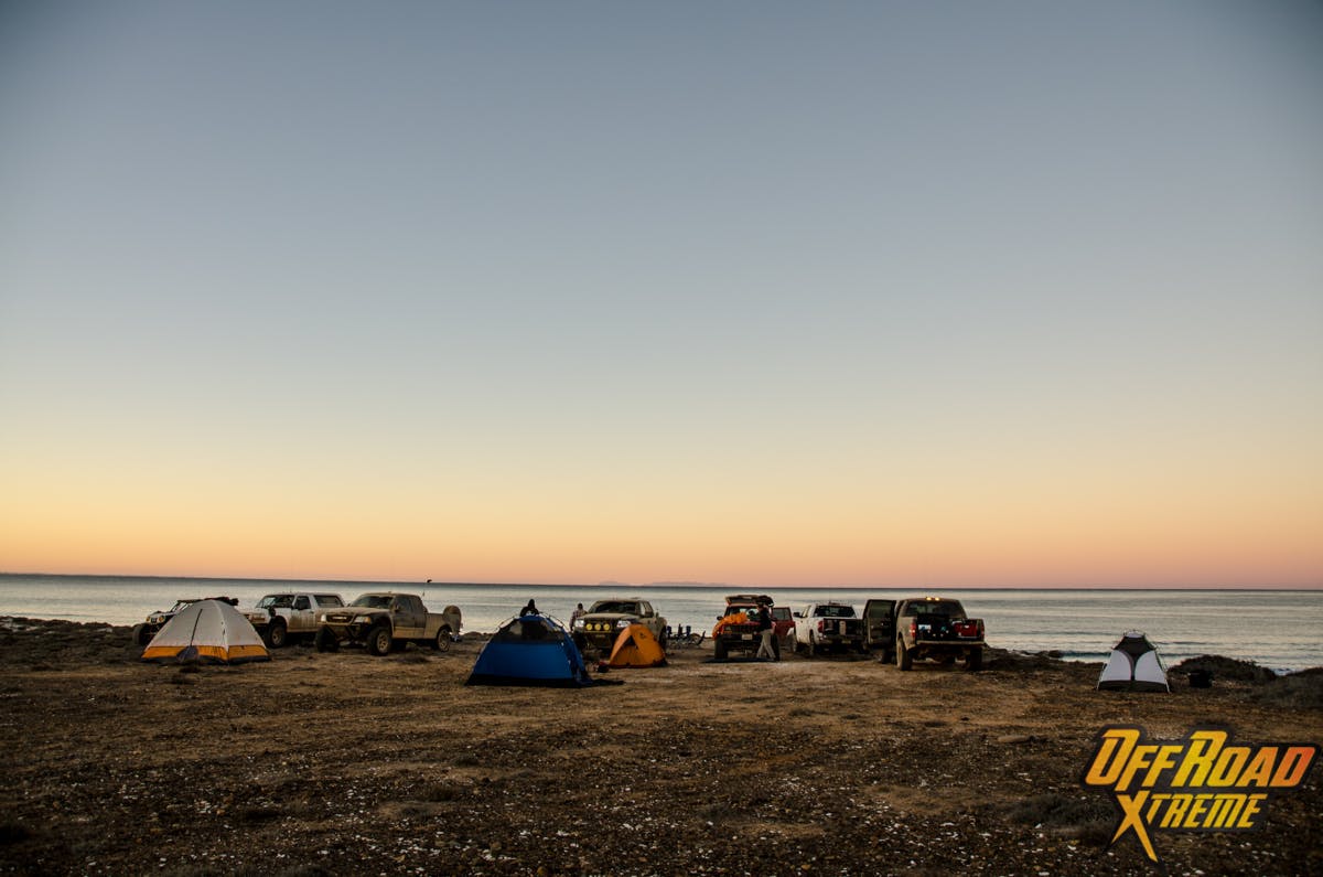 After a resupply and refueling in Camalu we returned to the beach and continued following the course. We decided to end our prerunning for the day late in the afternoon and setup camp on the beach before the sun set. It is hard to beat camping on a nice sandy Baja beach with friends, a campfire and watching the sun set after a full day of prerunning.