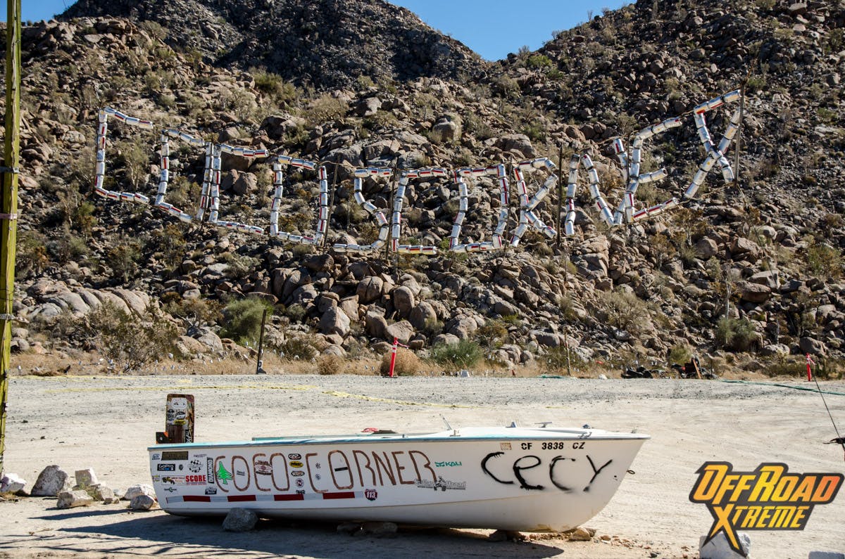 The entire course is typically marked with several different signs and ribbons. Mile markers appear on occasion and are marked on white signs. Course directions are marked with arrows on orange signs and will point up, left or right. A single or double arrow pointing down will mean there is a danger such as a cliff or washout. Green signs with a W marked on them mean you are going the wrong way. The course can be downloaded from the SCORE website prior to the race, however, GPS is not required as long as you keep an eye on the signs.