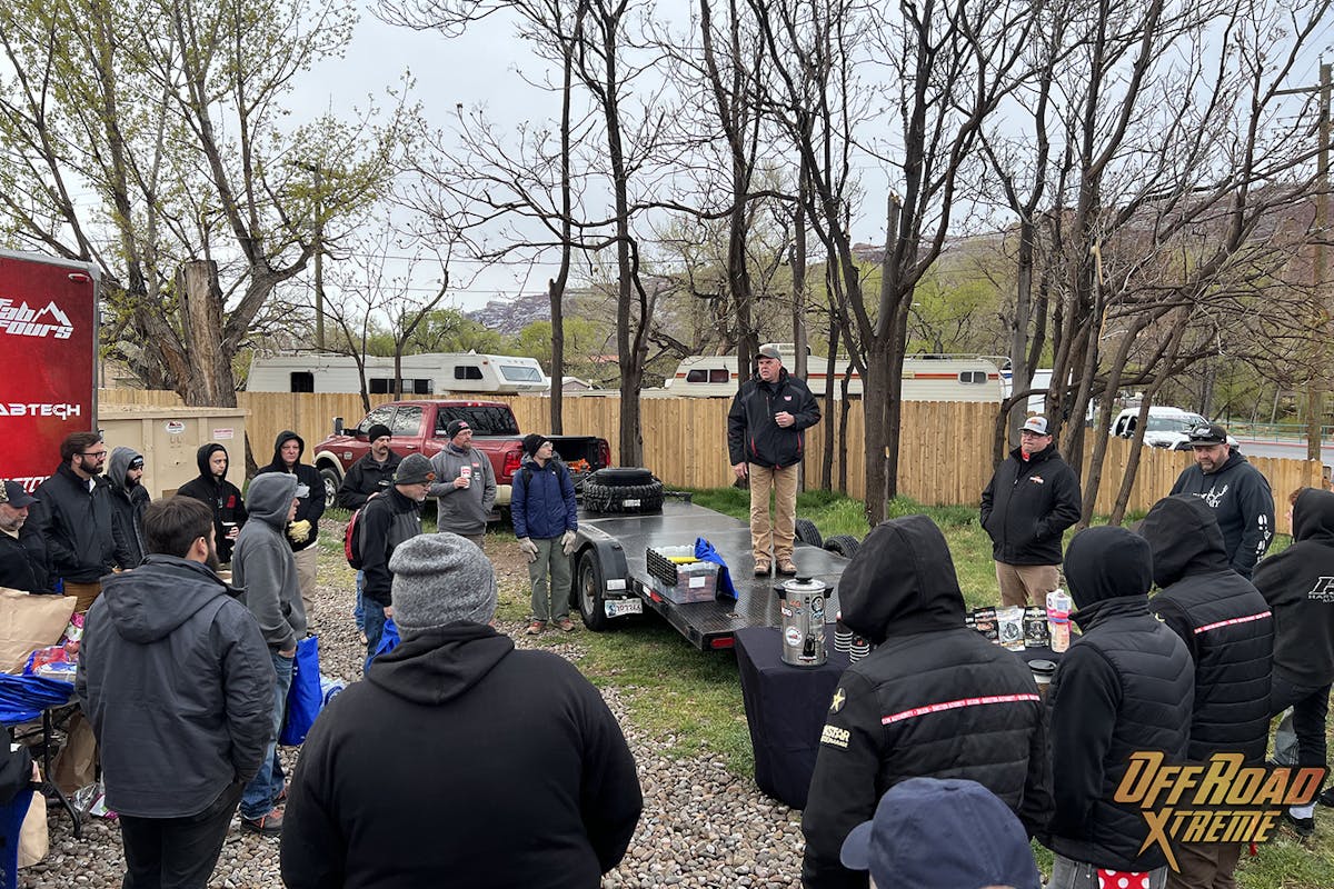 Thursday morning we met up at the Moab 4×4 Expo Compound for yet another safety meeting. Wendy Miles from The Shop Magazine primed everyone with some ice breakers and then introduced Matt Caldwell from Tread Lightly, and Brian Harris from Bronco Off-Roadeo Moab. Matt and Brian dropped the details on the plan for the day and then we headed out to the Behind The Rocks Trailhead.
