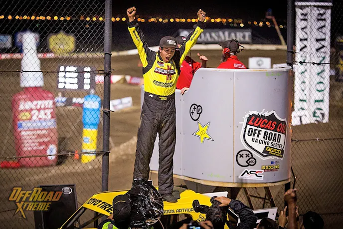Anderson would start round 10 on the front row again with Rookie Brandon Arthur on his right. Arthur came up through the Kart ranks, but went desert racing for a few years, and learned a lot while earning a 1450 class championship before graduating to Trophy Trucks. He missed the short-course action so he built a Pro Lite truck and returned to the Lucas Oil Off Road Racing Series.
