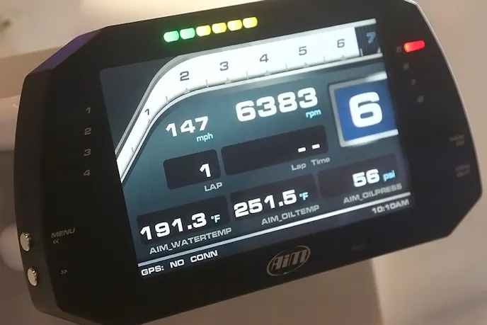 We love it anytime race developed technology makes it to the general public. AIM Sportline makes a line of dash displays that show data logging from added sensors or, depending on your application, directly from your ECU. Their MXL 2 has eight analog inputs that sample one thousand times per second, per channel. It has four digital speed inputs that can monitor anything that rotates; camshafts, hubs, axles, etc.