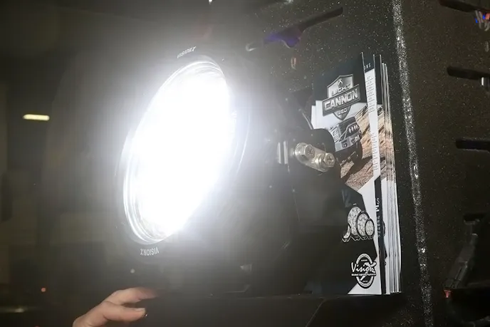 “From the older Gen 1 cannons, we are able to up the wattage and add efficiency,” Evan continued.” With the single source chip, we went from 25 watts to 40 watts. From the single chip to the multi-diode we went up to 49 watts. So the Gen 2 single diode is 40 percent brighter than the Gen 1 and the multi-diode is 40percent brighter than that.” To sum it up, the new Vision-X light Cannons are very, very bright.