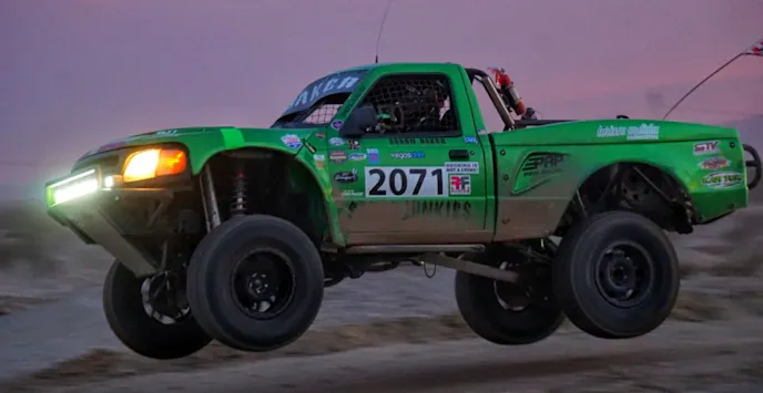 Getting through the desert, teams are able to enter the hot pits area. If a racer decides to pull into the hot pits, they need to drive 25 miles per hour to their pit crews. After making sure the vehicle is still in one piece, there is a small straightaway leading up to the crowd-pleasing dyke jump. The dyke jump attracts all the spectators as they watch drivers see who can hit the jump the fastest and farthest.
