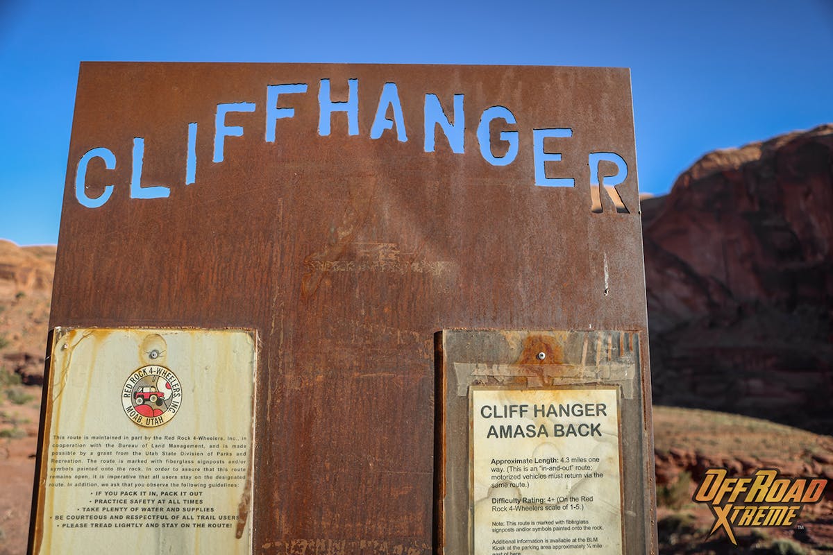Online resources refer to Cliff Hanger with a difficult rating of varying descriptions. Red Rock 4-Wheelers has determined Cliff Hanger as a Level 8, while onX Offroad gives it a Technical Rating of 7. Described with an extreme rating on TrailsOffRoad.com, they suggest you will be pressed with mandatory Level 6-7 obstacles, slick rock ledges, and epic views.