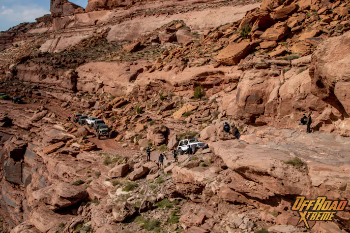 If you are an off-roader looking for a challenging trail, then Cliff Hanger is for you. I would recommend this trail as a Moab, Utah bucket list. My favorite part of the day was the amazing views, spending good times with great people, and that the only damage to our ORXtreme JL was some minor skid plate and rock slide abrasions. Off Road Xtreme gives Cliff Hanger a 4.5 out of 5 star rating.