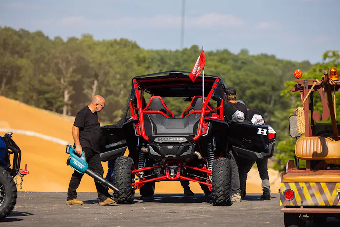 About halfway through the morning ride, we took a short break for some hydration and some media interviews. Afterward, we got back in the cars and staged so each group could experience the Honda Talon’s Launch Control feature. This is activated through a very simple series of controls via a dash-mounted switch and a simple sequence of shift-paddle and accelerator-pedal movements.