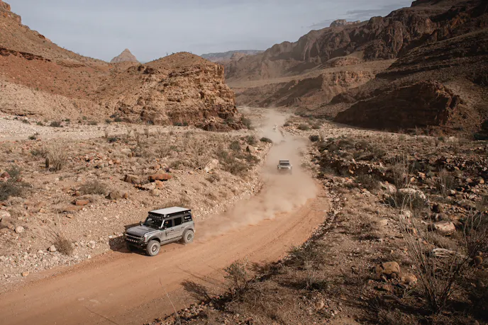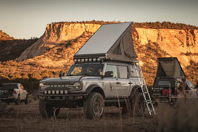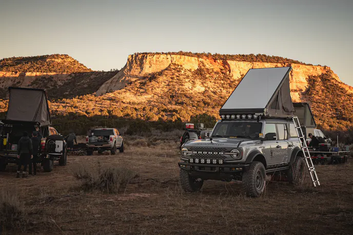Zaiden scheduled five days and four nights of camping with vehicles slightly modified for off-roading. They chose Pink Coral Sand Dunes at Elephant Cove Road for the campsite on night 1. The North Rim of the Grand Canyon at Locust Point was selected for the site of night 2. For night 3 of the off-road overland adventure, they landed on Peach Springs near Flagstaff, Arizona. And Aiken Mine in the Mojave Desert outside of Baker, California was the site for night 4 to culminate their off-road overland adventure. There were five Ford Raptors, one Ford Bronco, one Lexus GX460, and one Ram 2500.