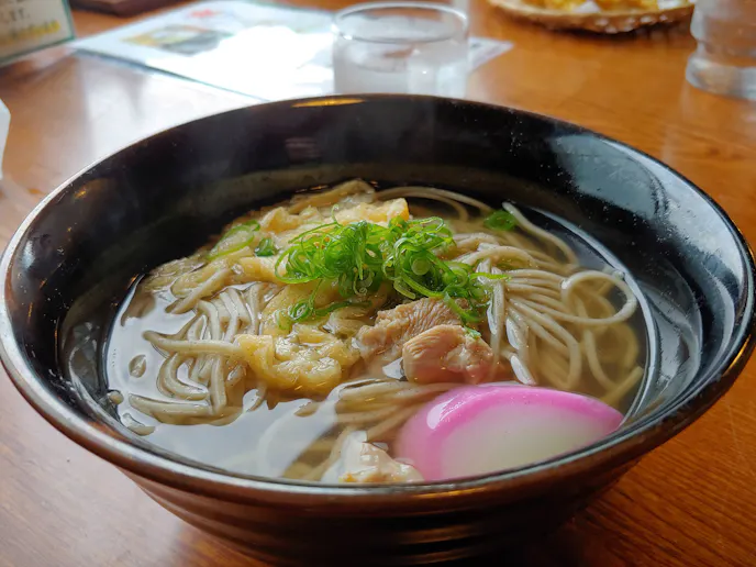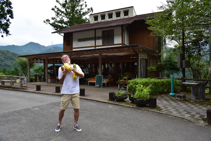 Midday led us to a quaint, elongated building overlooking a vast range of north-facing mountain peaks. Part noodle shop, part mountainside campground, Gakujin no Mori serves as one of the last businesses along this end of Super Rindo where a hot meal can be obtained.
