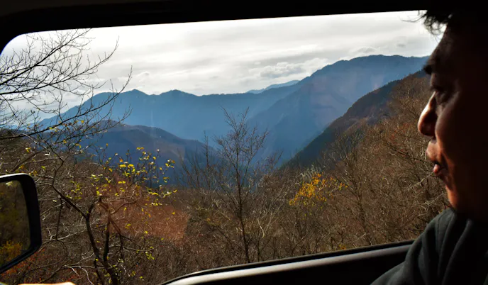 A few weeks later, I arrived bright and early at Outclass Cars, bags packed, and thoughts of misty mountain roads in mind. After a brief meet and greet, we loaded into eight of the company’s top off-road vehicles and began our trek inland. I was riding point with Akaji-san in the Costco van, serving as both spotter and source of American entertainment.