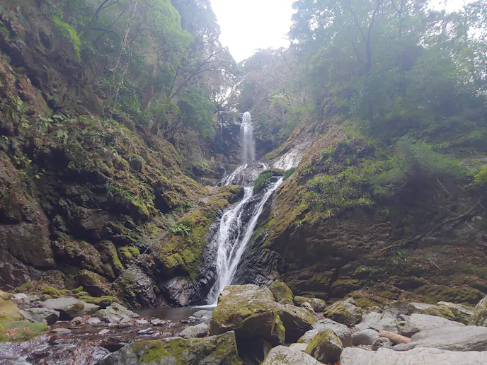 Navigating a series of broad and rocky trails in and out of the mountain passes made for a full day. Our 10-hour expedition led us from towering waterfalls to the base of a tree-barren Mt. Tsurugi. This land mass is the second-highest peak on Shikoku island.