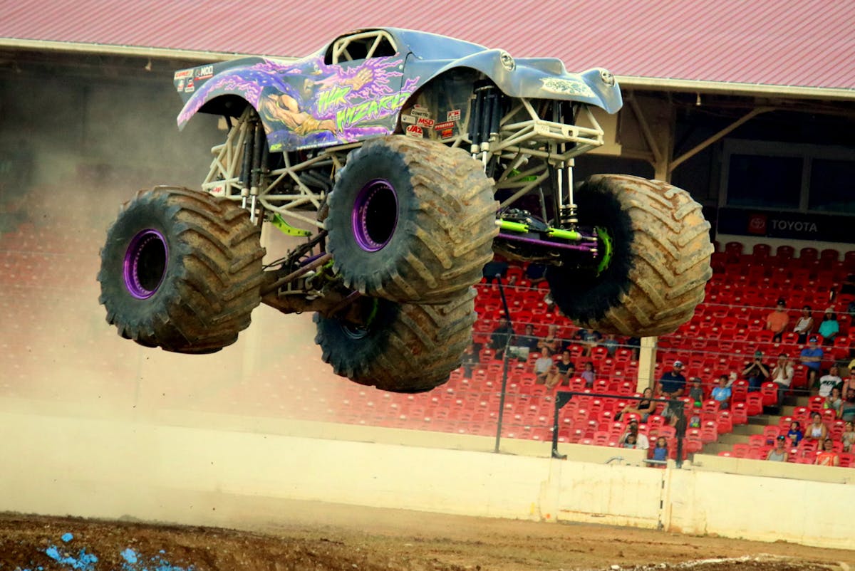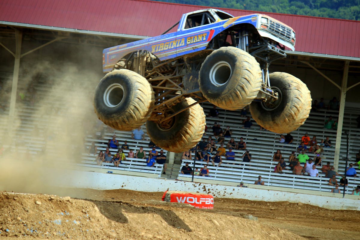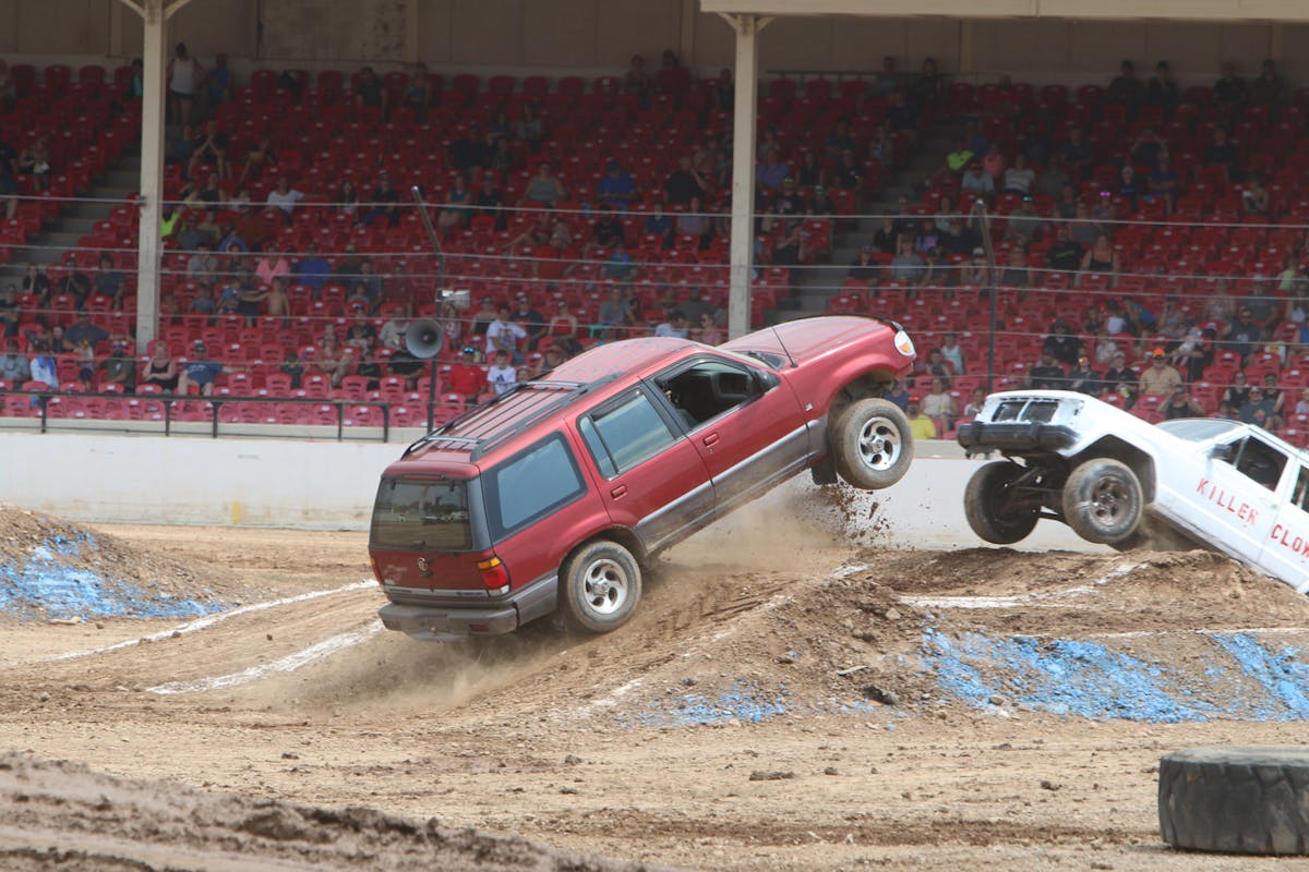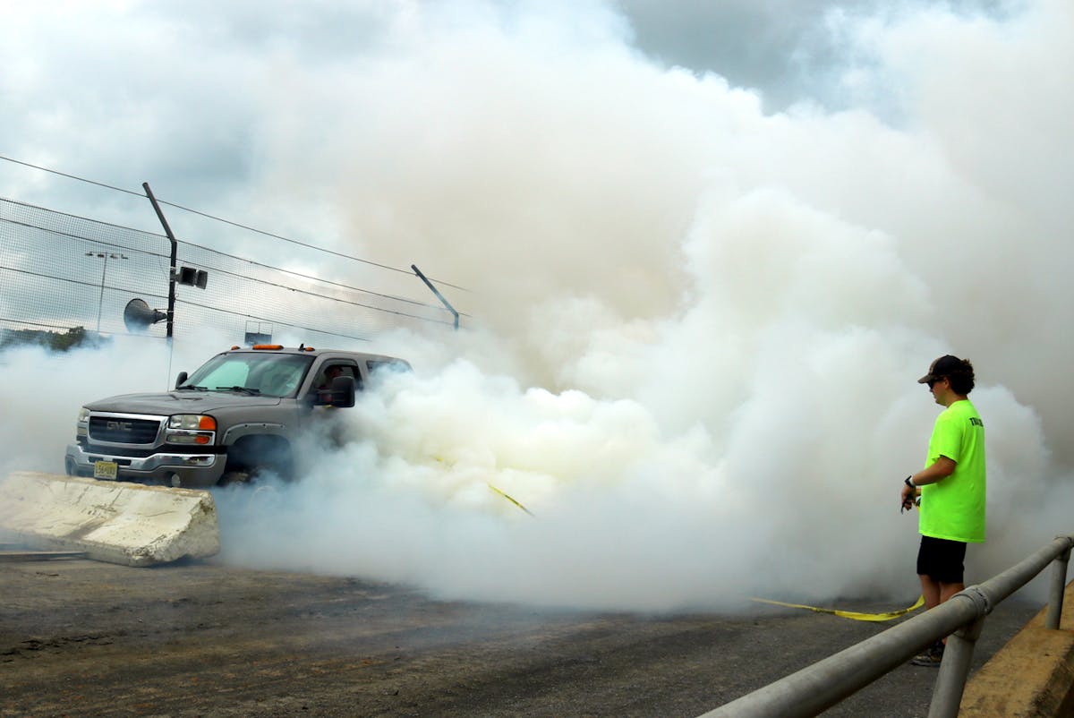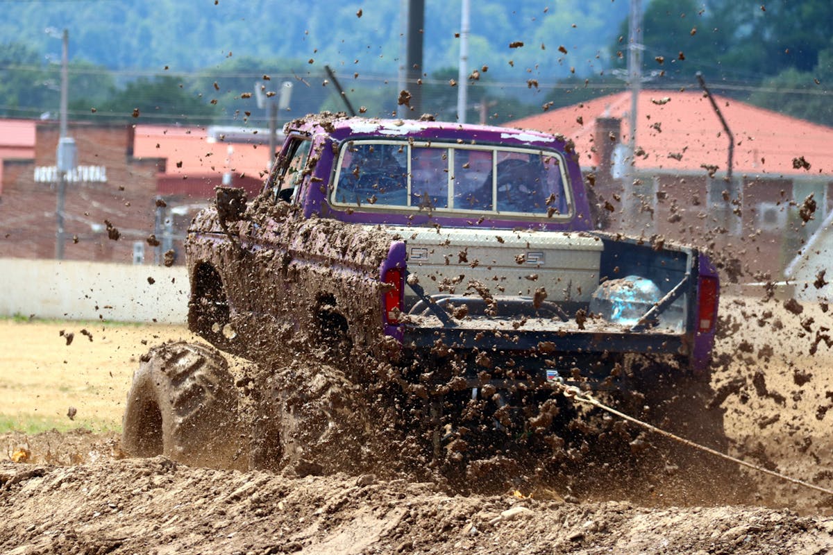 The infield of the Summer 4-Wheel Jamboree was the place to be for action. These four images offer a glimpse at the Monsters of Destruction monster truck racing, tough truck racing, mud bog racing, and tire-melting burnout competition.