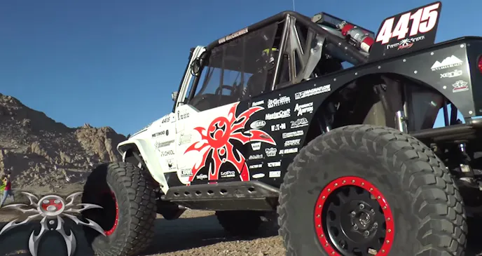 The video you are about watch above is the entire qualifying run for the Poison Spyder “Crispy” unlimited class Jeep, and it’s being piloted by one of our favorite off-road racing drivers, Rob MacCachren, with Lance Clifford in the co-pilot seat. MacCachren was racing the King of The Hammers for his very first time, but the hot shoe desert off-road racer who has nailed multiple championships and numerous race wins in a number of off-road racing series (such as SCORE, LOORRS, and SNORE) over the last few decades really put the pedal to the metal and blasted like a rocket through the qualifying course.