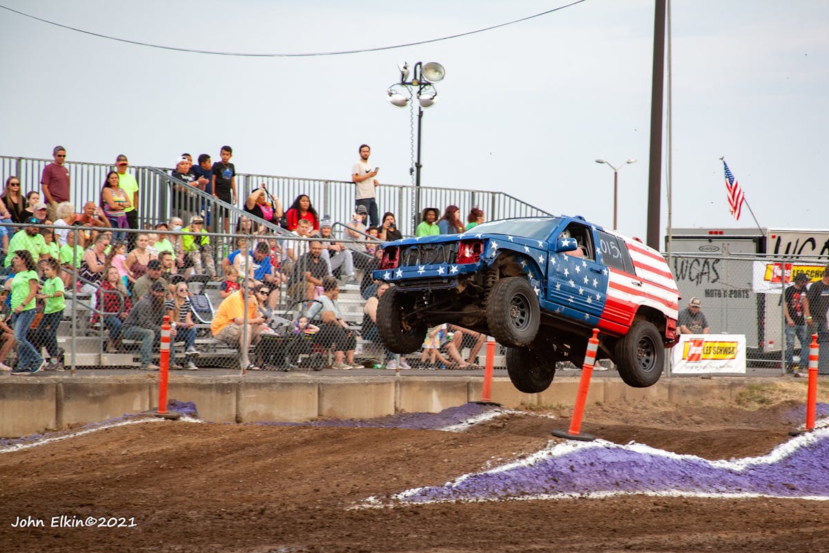 These thrill seekers, men, and women alike, gathered at the Clark County Fairgrounds in Ridgefield,  Washington. The warm evening breeze had a tinge of super unleaded to it as several dozen wild Tuff Trucks filed into the arena for the national anthem.