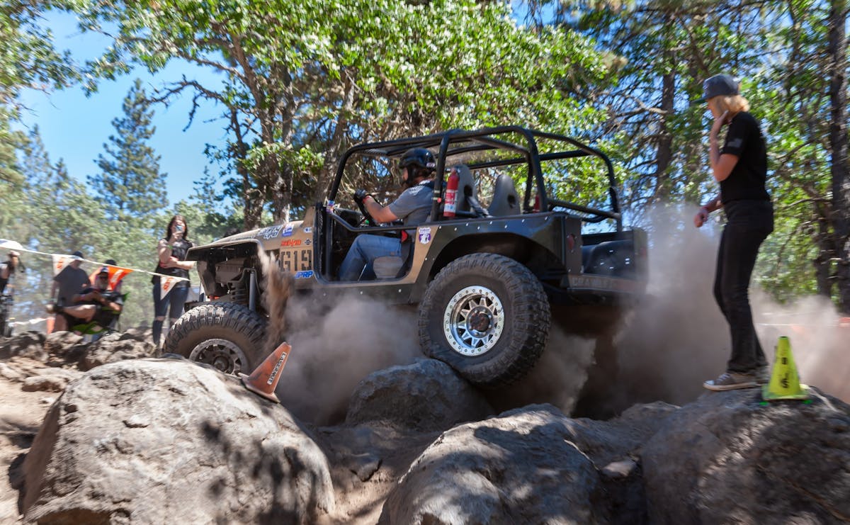 For those not familiar with the sport of rock crawling the teams are amazing to watch. A teams is made up of a driver and a spotter. Spotters direct the driver through gates (orange cones) with precision. Spotters do not ride in the vehicle. A spotter can, however, move rocks, logs, and branches within the course to aid traction.